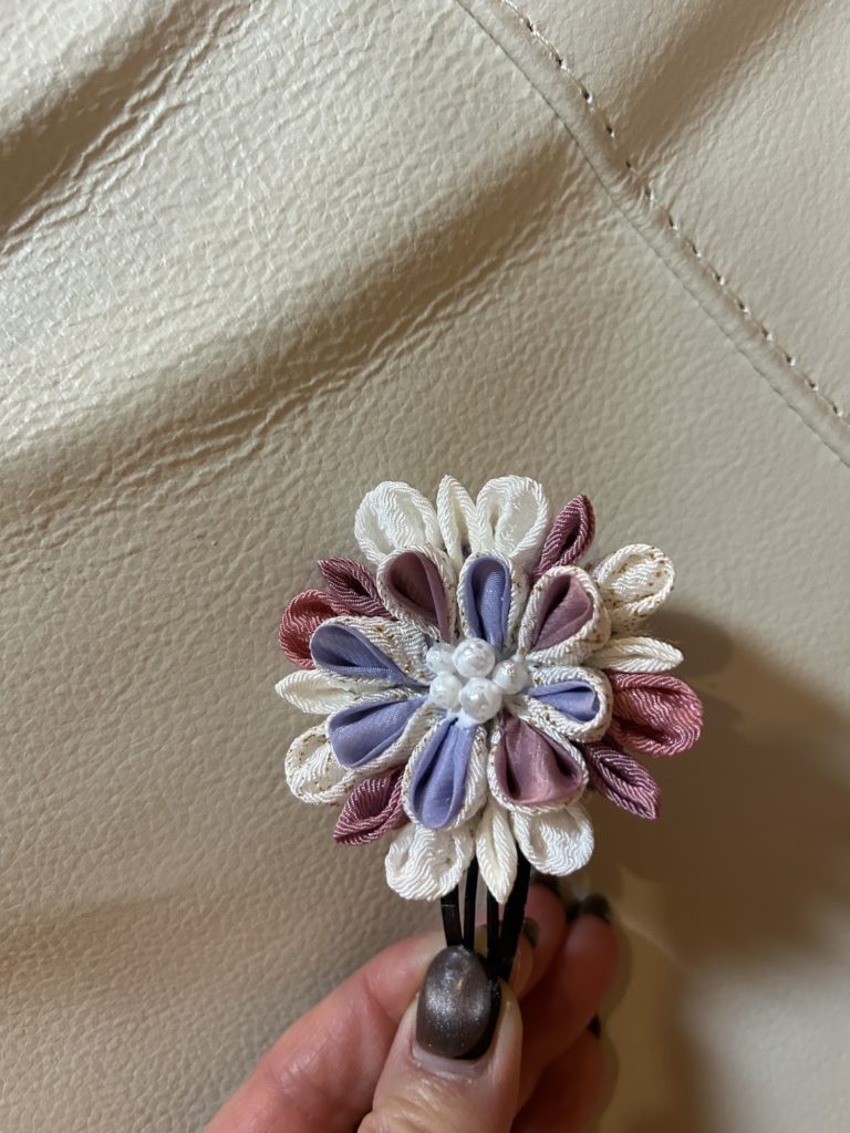 ●日常 つまみ細工 2025.12.01 こんにちは♪ 皆さんインフルエンザは大丈夫ですか?そう言いながら、ワクチンをまだ迷ってます。笑 さて、、日常blogです! 宗像のメイトムでは、色々な教室があってて、今回1日だけの習い事をみつけて、行って来ました! 小さな布を折り、花弁を沢山作って髪飾りが出来ました😊 下手くそで、花弁も対象じゃないですが、なんとか🤍 娘に使っていいよ!と、伝えましたが断られ。。😂 間があかないうちに、やらないとコツを忘れてそうです。。。 古賀でランチ🎵 前の記事 光の地上絵 次の記事