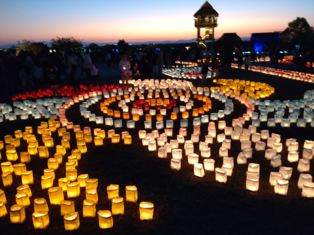 ●日常 光の地上絵 2025.12.08 こんにちは♪スタッフのKです😊 いつもblogをご覧頂きありがとうございます♪♪ 先日のお休みに、佐賀県吉野ヶ里歴史公園に行って来ました🚗 17時より始まる、ライトアップイベントがとっても良かったんです🤍バルーンフェスタの気球も展示されてて、屋台も沢山とても、盛り上がってました😊 14日まで、開催してるので、是非足を運んで見てください! 来年もぜーったい行こう! つまみ細工 前の記事 祐徳稲荷神社へ! 次の記事