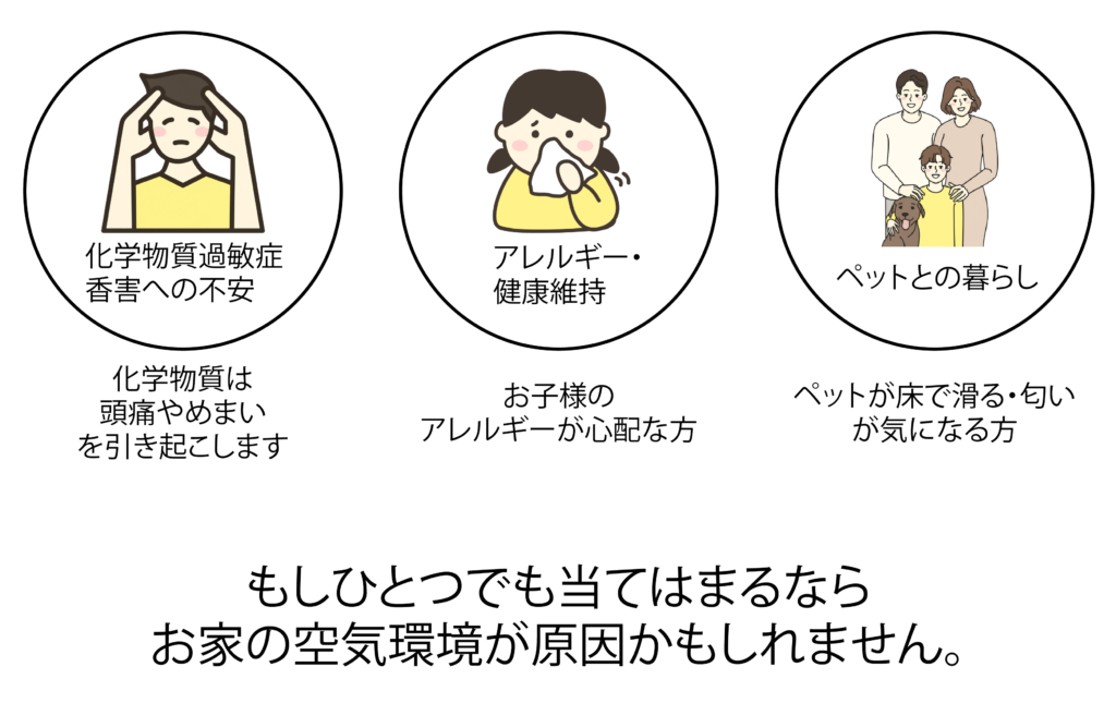 体が小さく床に近いペットは化学物質の影響を受けやすいため、