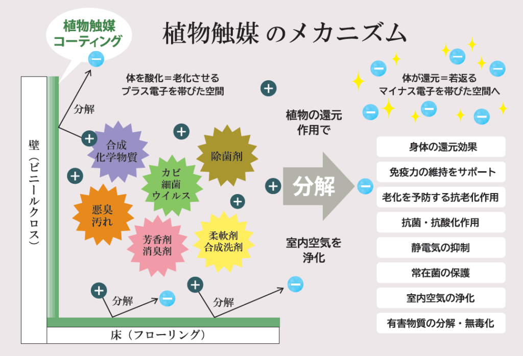 植物触媒は、植物由来の成分のみを使用した、環境にも人にも優しい素材です。