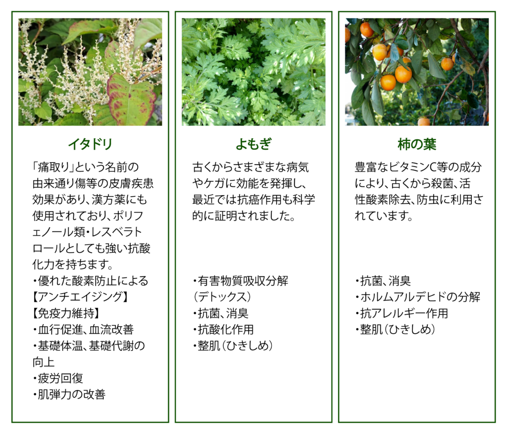イタドリ、よもぎ、柿の葉。自然の力を凝縮した天然成分100% のコーティング剤。